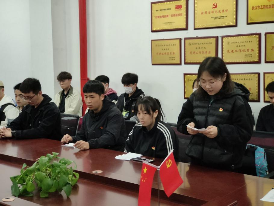 学生党支部书记杨云燕同志、组织委员谢琦同志、宣传委员胡金成同志,纪检委员谢红炼同志及全体党员参加会议。