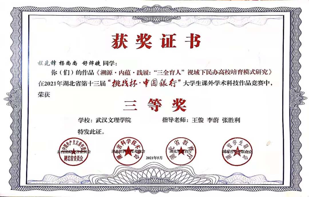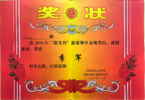大学之育在于美学之育。19级法学二班韦占洋同学多次走上文理群星、元旦晚会等大型校级文艺活动的舞台,均获得较好名次,为学校的文艺事业做出了巨大的贡献,同时也为学校培养出一大批文艺青年。舒烨婕同学发挥创新思维,积极参加第十三届“挑战杯”并荣获省级三等奖。19级法学二班同学也活跃于各项领域,曾荣获304永利集团“新生杯”篮球赛季军、“文理杯”足球赛团体赛冠军。