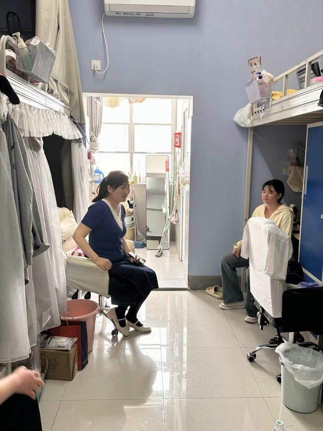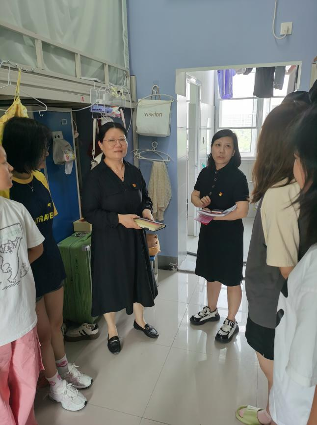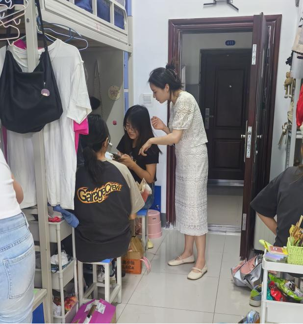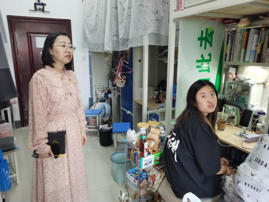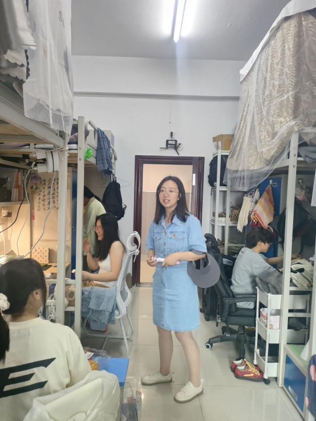 寝室是大学生生活的重要场所,也是党员进寝室工作的重要阵地。江莲老师从生活方面详细询问并了解同学们的生活情况,关心他们的饮食起居和生活细节,告诉学生要经常开窗通风,维护好个人卫生,确保寝室环境干净、整洁、舒适,同时倡导寝室成员之间相互关心、相互帮助、和谐相处,共同营造温馨、舒适的寝室环境。