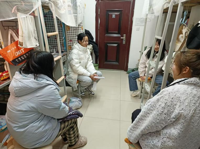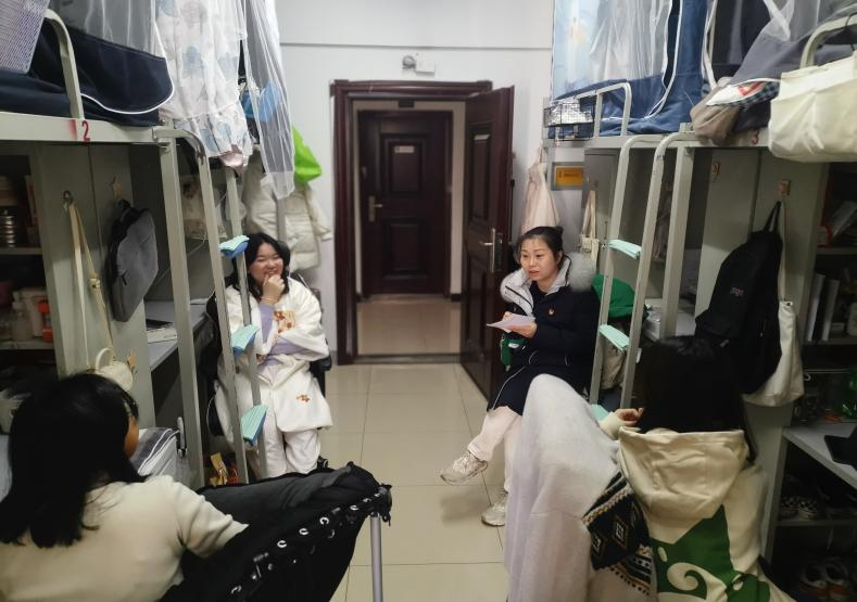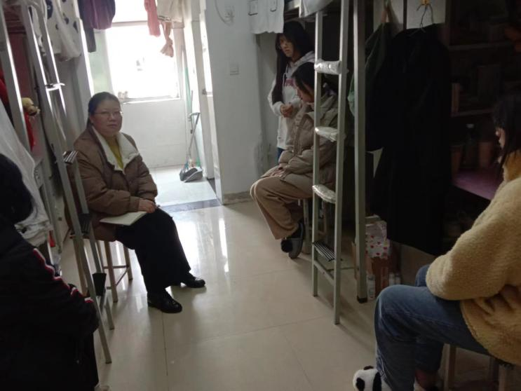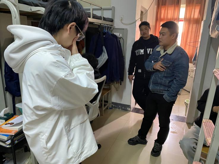 为了深入了解学生,走近学生生活,排查宿舍安全卫生隐患,2023年2月15日中午,在304永利集团党总支书记张晓同志的带领下,全体党员老师以及部分学生党员代表走进22级新生宿舍,开展了“党员进寝室”的访谈活动。