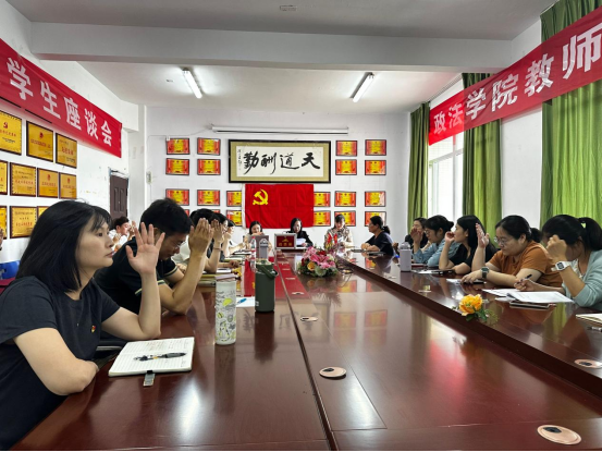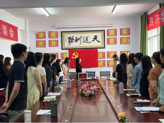 奏唱国歌环节,激昂的旋律在会场内回荡。党员们全体肃立,目光坚定地注视前方,神情庄重,高声齐唱国歌。国歌奏唱完毕,现场响起了热烈而持久的掌声。党员们都以饱满的热情、更加严谨的态度投入到接下来的选举环节中,确保选举出政治素质高、工作能力强、群众基础好的教师党支部支委班子,为学院的发展提供坚强的组织保障。