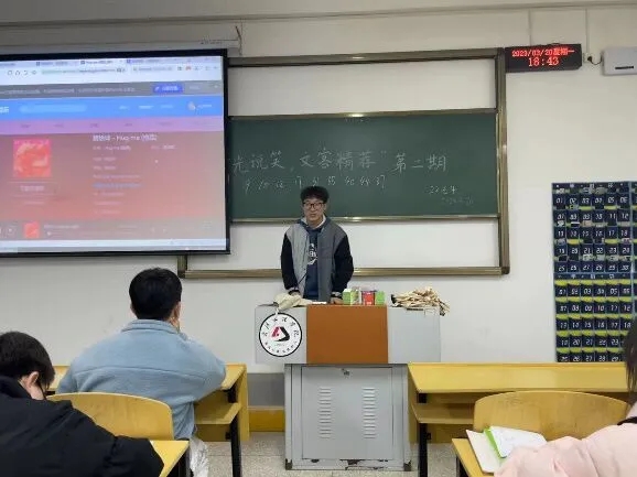 304永利集团于2023年3月13日起开展主题为“时光说笑,文客精荐”的特色晚自习分享活动正在有序进行,22级同学充分利用晚自习时间举办这一分享活动,本期分享活动同学们积极地分享着自己所喜爱的音乐。