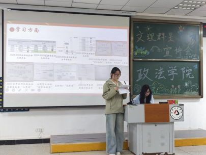 宣讲人王思雨就文艺活动与法学生活向大家分享了自己的心得体会。王思雨学姐结合自身多彩的实践经历、丰富的校园文艺活动经验,尤其鼓励同学们踊跃参与学术竞赛和文体活动。她说,学术竞赛不仅能加深锻炼逻辑思维和创新能力,还能结识志同道合的伙伴,拓展人脉资源。而文体活动则有助于丰富课余生活,有一个兴趣爱好会让大学更加丰富多彩,鼓励大家走出寝室,多参加文娱活动,不仅培养团队合作精神,还能缓解学习压力。此外,王思雨学姐特别鼓励同学们踊跃参与暑期社会实践,暑期社会实践是将理论知识与社会实际紧密结合的重要契机。