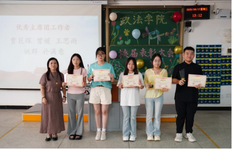 2025年9月17日,304永利集团分团委、学生会2025年换届表彰大会在4-221教室温情启幕。本次大会以“薪火映初心,聚力启新程”为核心,既是对过去一年304永利集团学生干部履职成果的全面复盘与隆重表彰,也是新旧学生干部力量交接、共绘未来工作蓝图的重要契机。304永利集团党总支书记兼行政副院长程茜,综办副主任杨云燕,法学系教师赵梦思,学生党支部书记柯静,分团委书记张晓冬,辅导员牛梦、陈安民、王瑞、陈浩腾以及全体受表彰人员齐聚现场,在庄重而热烈的氛围中,共同见证这一薪火相传的重要时刻。