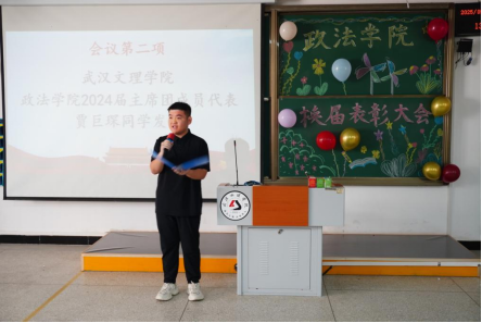会议第二项,由304永利集团上一届主席团成员代表贾巨琛致辞。他回顾了过去一年304永利集团团学的工作情况与所获荣誉,指出这些成绩的取得离不开全体学生干部的密切配合以及老师们的专业指导。他还分享了在组织协调、活动策划中的经验与感悟,强调团队协作与责任担当是推动工作不断前行的核心动力。他提到,每一次深夜的讨论、每一场活动的成功举办,都是集体智慧与奉献精神的结晶。面对新一届干部,他寄语道:“唯有保持热忱、俯身做事,才能真正赢得同学的信任与支持;唯有在服务中提升自我,在奉献中磨砺品格,才能不负青春使命。”最后,他对团学各部门的辛勤付出表示认可,向上一届团学干部和老师致以诚挚谢意,同时对新一届团学干部送上了美好期许。