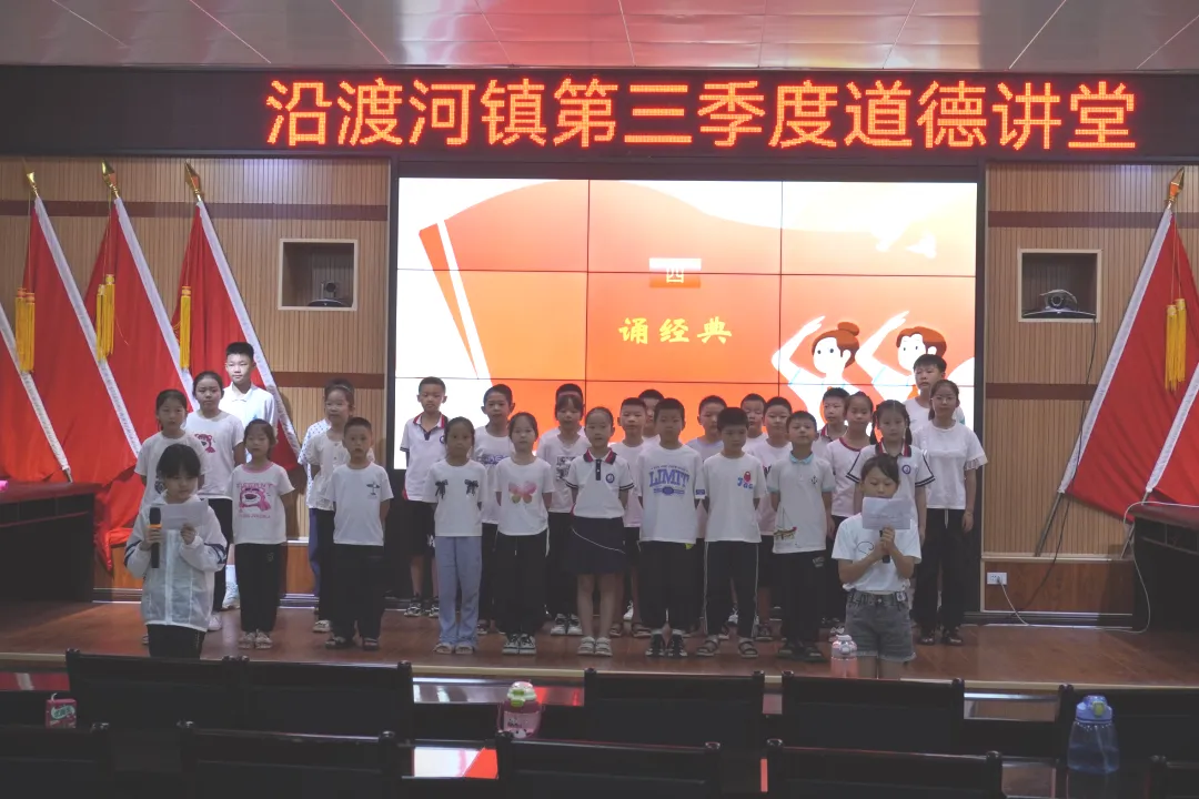 领诵员刘格格、连子月带领同学们诵读《孟子·离娄下》第二十八章。“爱人者,人恒爱之;敬人者,人恒敬之。”是中华民族自古以来都追求的清正之德,希望这段互爱互敬德文字可以随着道德之风吹进孩子们的心间。