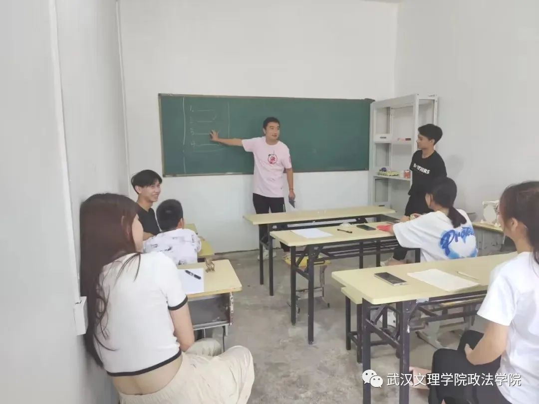 晚上全体队员在杨柳池教学点操场上讨论教学班的划分和课表内容的整合,并讨论和编排结营汇演,最终确定开展普法小课堂、模拟法庭、趣味英语、手工、绘画、舞蹈、体育和播音主持等课程,并决定由全体队员上场为结营汇演献出惊喜大礼。