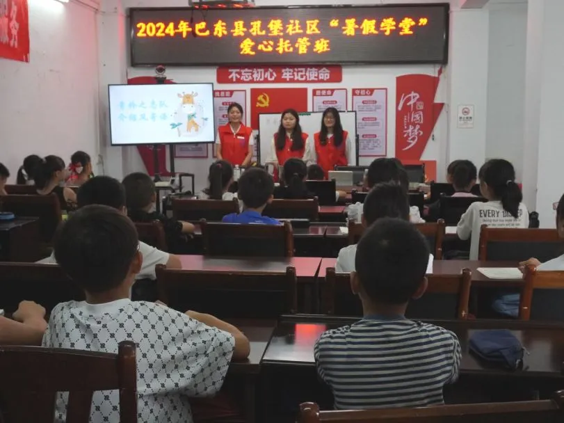 2024年7月17日,“青衿之志”志愿服务队在巴东县沿渡河镇孔堡社区、野马社区和罗溪坝社区正式开班,本次七彩假期志愿服务活动暨“暑期学堂”爱心托管班共计招收小学生140余人,课程内容包括作业辅导、安全教育、普法宣传、绘画大系宣讲、大学梦想课堂、书法课堂等多种多样的形式,丰富同学们的假期生活。
