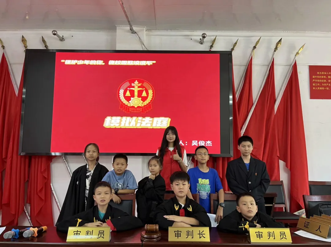 “现在进行宣判:本院认为,被告人张开元殴打他人,已构成故意伤害罪,证据确凿、充分,指控罪名成立,予以支持……”上述场景并不是某法院的场景,而是罗溪坝社区里的一场模拟法庭。为增强小朋友们的法治意识,提高小朋友们对法庭程序的了解,营造“不霸凌、不被霸凌”的良好童年环境,2024年7月26日,304永利集团“青衿之志”志愿服务队带领罗溪坝社区的小朋友们开展了一天的法治系列课程,用普法课堂、情景剧演绎、模拟法庭的方式,将法治的种子种在小朋友的心中。
