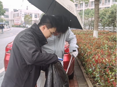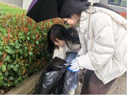 在清理区域内,志愿者们手持夹子,仔细地将散落在花坛旁边上的烟头、零食包装袋一一捡起,不放过任何一个角落;在活动区域内,大家小心翼翼地清除落叶,将隐藏在花丛间的塑料瓶等垃圾清理出来。志愿者们忙碌的身影遍布校园各处,形成了一道亮丽的风景线。
