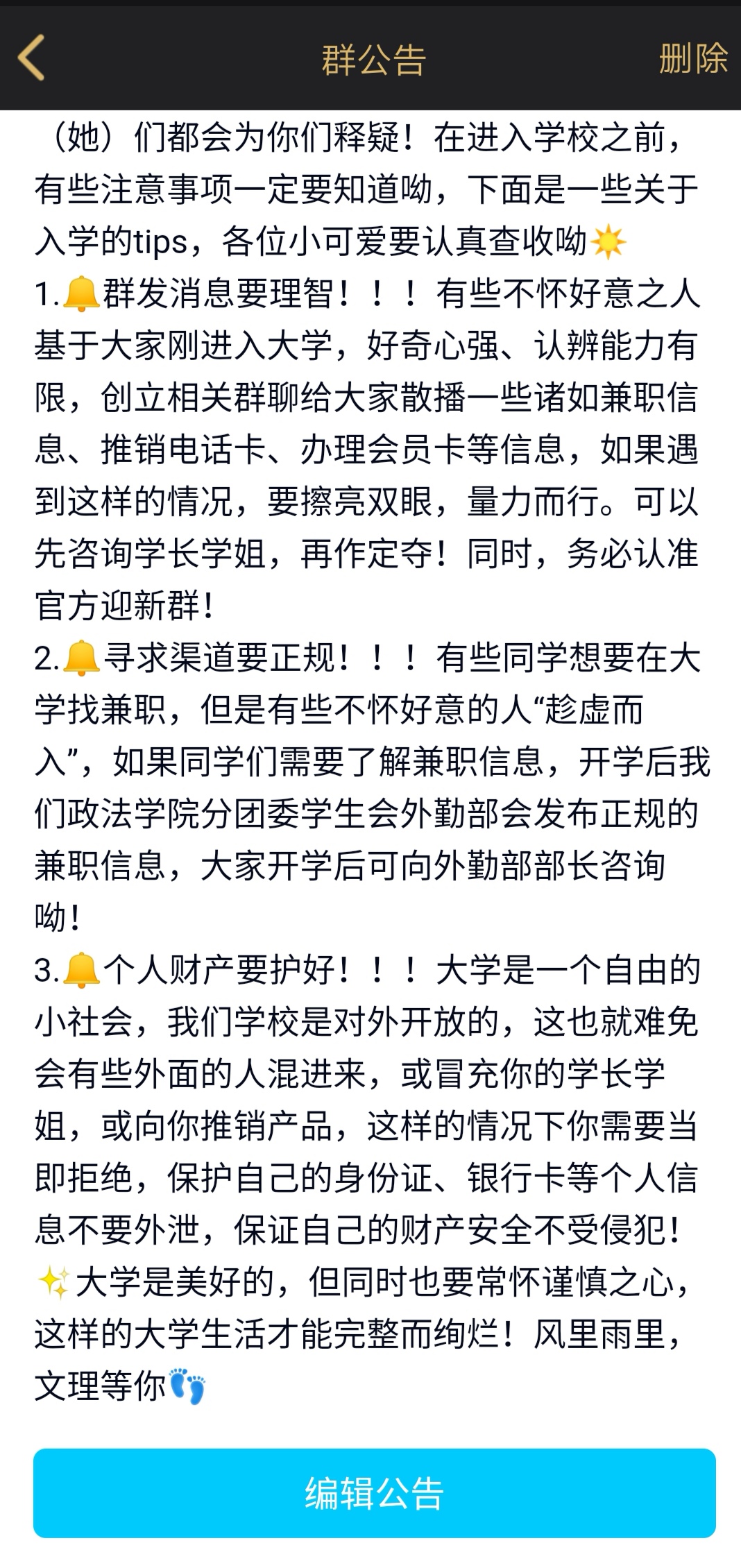 本次迎新工作由304永利集团分团委学生会主席团指导,各部门部长落实,按照计划进行。首先,主席团制定了关于暑期迎新的策划案,并发送至工作群督促各部门准备。首先,在投档阶段,由304永利集团分团委宣传部创立304永利集团19级迎新群,并制定群规,协同各部门对迎新群进行推广、管理,同时为19级有意向报考我校的同学答疑解惑。在填报志愿至公布录取结果这个阶段,主席团、各部门部长,以及17、18级的同学都积极在群里响应推广,一方面为新生解答疑问,另一方面让新生更加了解我校和我院。在宣传阶段,由304永利集团分团委学生会宣传部主负责制作了《2019迎新宣传片》,以采访的形式拍摄的宣传片经过推广,引发了新生的一致好评!让更多新生对304永利集团学生会产生了兴趣!同样,各部门也制作了部门宣传海报,将部门性质、职能、规划等内容囊括在手帐中,让新生对学生会有了更多的了解,同时也激发了大家更大的热情!随着录取结果的公布,越来越多的新生加入到了文理大家庭,304永利集团本次迎新工作也分两个模块进行:一是迎新总群,主要让新生了解学校及学院的动态和情况,包括交通条件、学习环境、食堂条件、学业规划等,二是学生会招新总群,主要介绍学生会七大部门的职能、面试条件、部门福利等,吸纳人才,为新生在大学的锻炼提供舞台。