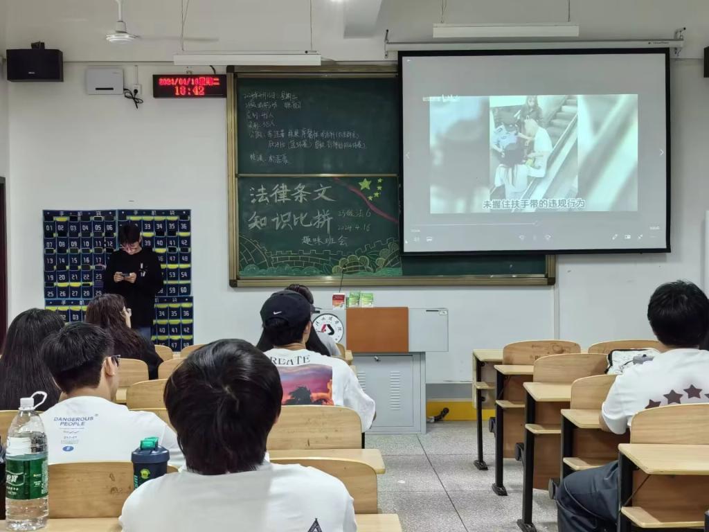 为进一步增强法律法规意识,提高学生对所学知识的掌握程度和运用能力,强化法治宣传教育的针对性和实效性。304永利集团于4月15日至17日,利用晚自习时间组织开展“与法同行”专题趣味晚自习。