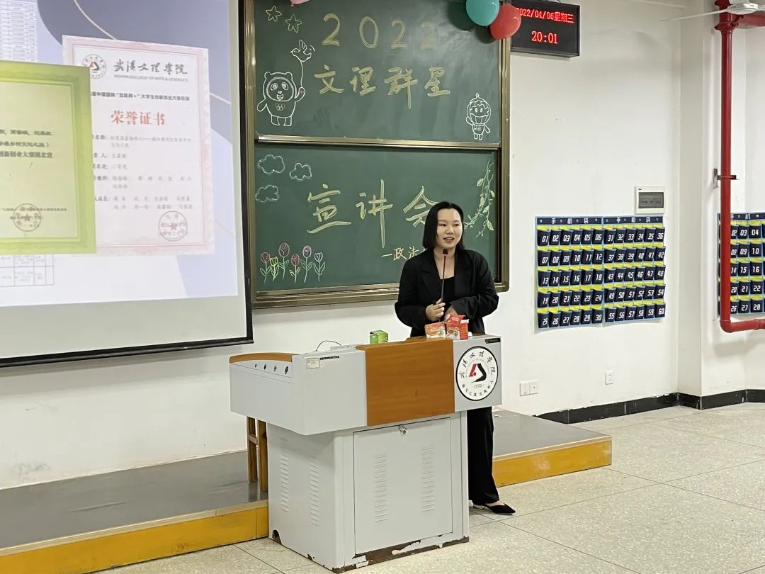 宣讲内容:龚文龙学长希望我们抓好每一门课程,广泛阅读,积极思考,不要有抵触情绪,培养自己的兴趣非常重要,同时也鼓励同学们多参加实践活动以及志愿者,会有意想不到的收获。