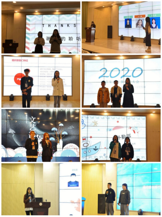 主席团发言完毕后,就到了部门介绍环节,8个部门部长依次上台进行部门介绍。部长们从部门性质、部门职能、部门干事、部门总结与规划等对各自部门方面作了全方位、多层次的讲解。通过各部门部长的介绍,干事们对学生会的规章制度有了更加深入的了解,这有助于干事们尽快明确部门职能,融入团学,并积极投入工作中,同时也为团学各项工作的有序展开奠定了坚实的基础。
