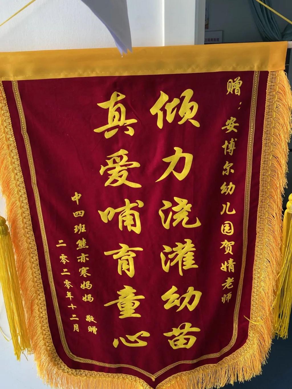 学生家长赠送的旌旗