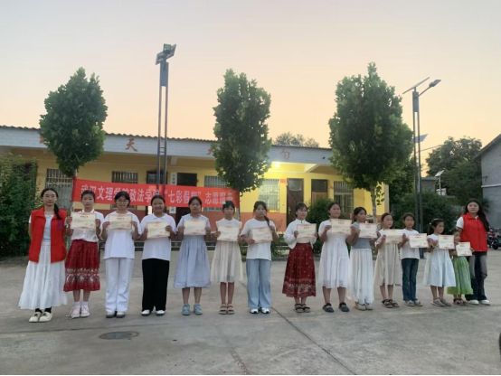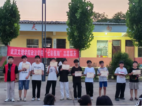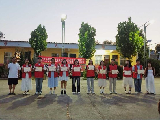舞台中央的聚光灯,不仅照亮舞台,更聚焦成长!本次演出特别设置颁奖环节,既为暑期学堂里努力学习、进步明显的孩子提出表扬,见证“知识和成长双向奔赴”;也为辛勤付出的志愿者“小老师”和带队老师颁发荣誉,感谢他们的默默耕耘。304永利集团“青衿之志”志愿服务队荣获十里铺村赠予锦旗,以表彰团队在暑期“三下乡”社会实践中的辛勤付出。志愿服务队扎根乡村,用实际行动践行青春担当,这份荣誉既是对志愿精神的肯定,更彰显了校地联动共筑温暖的美好情谊。