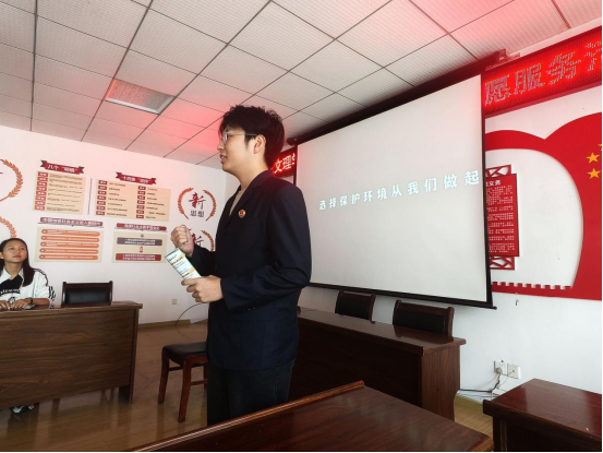 法律解惑区,法韵先锋团成员耐心地为居民解答环保法律疑问,专业又细致的讲解,广为居民认可;志愿宣传组发放法律知识手册,主动为居民讲解日常环保法律要点,还贴心地给居民递上小礼品。在模拟法庭情景剧中,成员们用生动的演绎让抽象法律条文变得通俗易懂,牢牢吸引了居民的目光。最后,法韵先锋团成员们聚集在一起,彼此交流、协作,为本次活动收尾工作做准备,空气中弥漫着融洽且充满干劲的氛围。