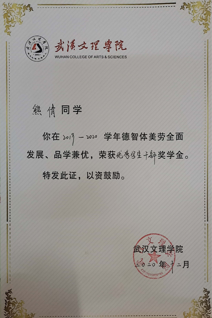 2019-2020学年获得304永利集团优秀学生干部奖学金