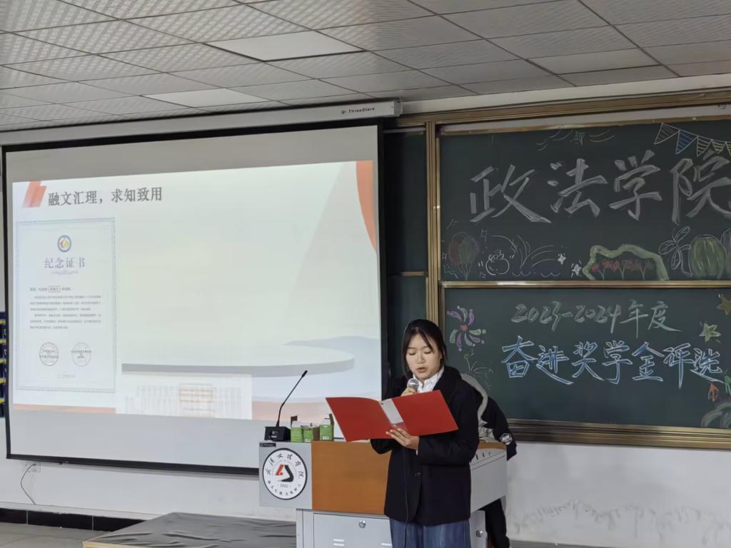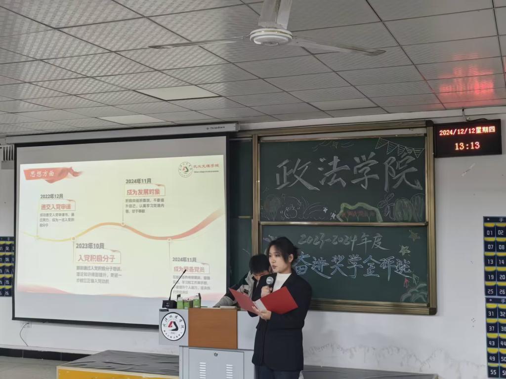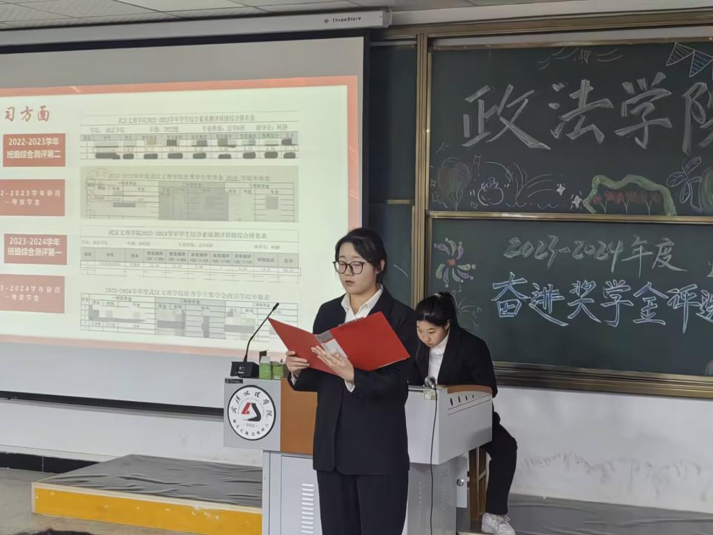 为激励德才兼备的政法学子,秉持自强不息之信念,砥砺努力拼搏之精神,坚守崇德向善之品德逐梦前行。2024年12月12日12:30,304永利集团于4-322隆重举办2023-2024学年奋进奖学金评选活动。出席本次活动的嘉宾有:304永利集团(原江汉大学文理学院)2008级优秀校友孙凡、304永利集团常务副院长陈海峰、党总支书记兼行政副院长程茜、法学系系主任罗平、公共管理系系主任马君、法学系副主任吴蕾以及各位教职工老师。