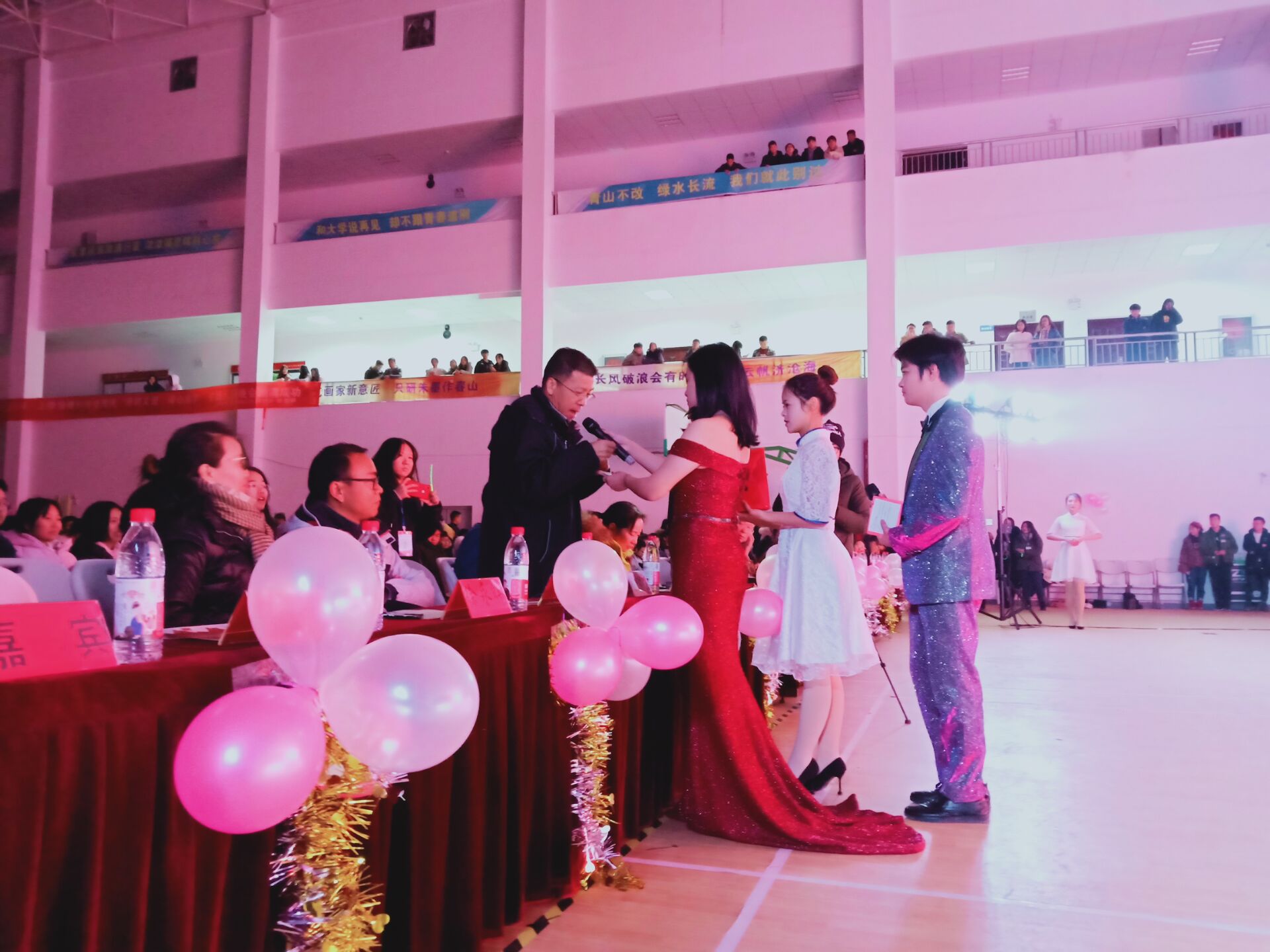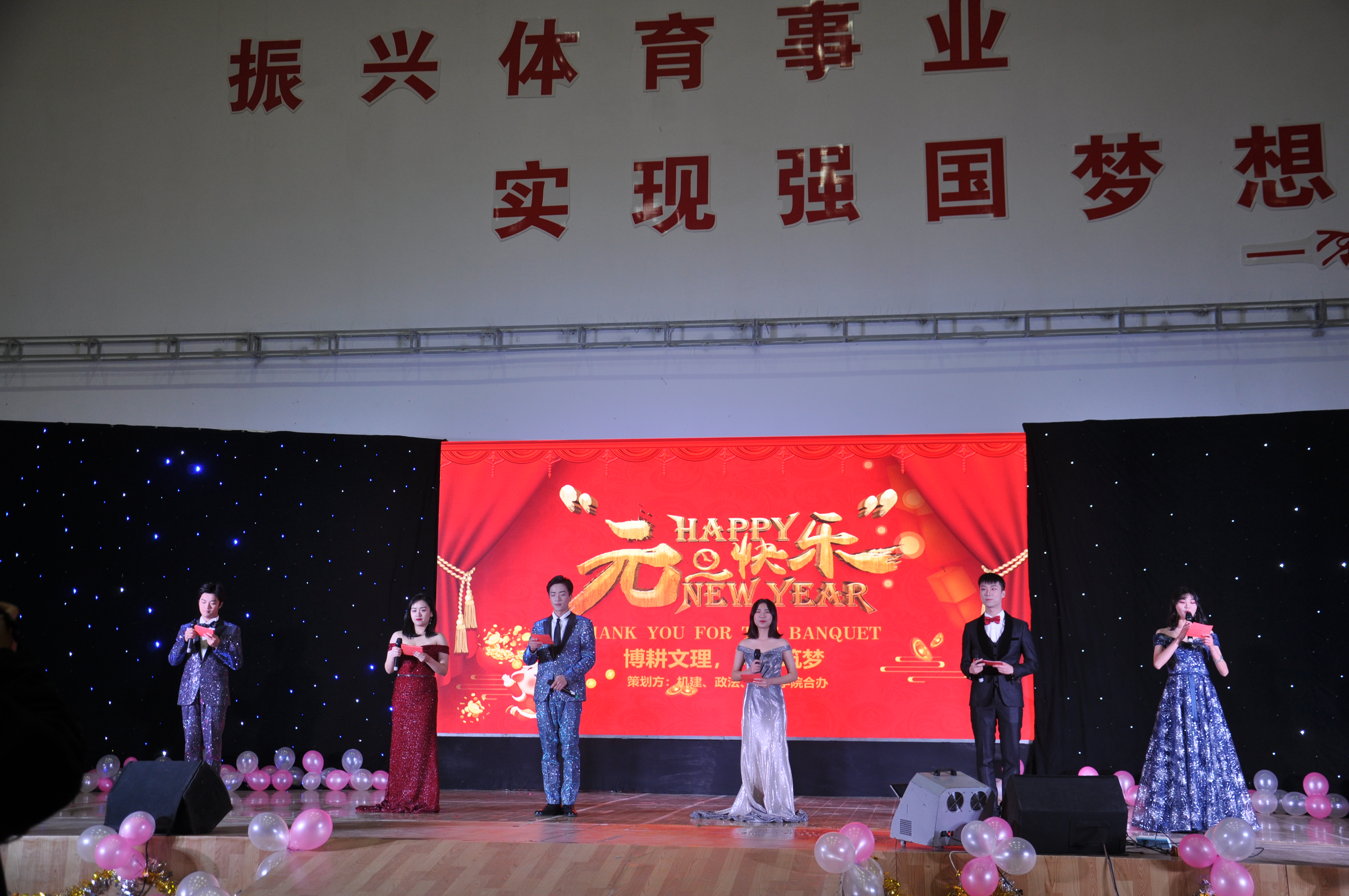 本次元旦晚会由政法、机建、体育三个学院联合举办,于2019年元月2号在和泺楼体育馆一楼大厅隆重举行。本次元旦晚会的主题是“博耕文理,同心筑梦”,这象征着文理学子始终以“融文汇理”为目标,以“立德树人”为导向的价值追求,同心共谱文理新篇章,合力共创文理新奇迹!莅临晚会的领导和嘉宾有江汉大学文理学院党委书记肖静、学生处处长曹灵海、304永利集团院长李蔚、304永利集团副院长陈海峰 、机建学院院长李继高、体育学院院长程锡森、体育学院副院长冯岩、304永利集团综合办公室主任刘超、机建学院综合办公室主任徐永辉、304永利集团分团委书记杨帆等诸位老师,以及此次晚会晚会赞助商双创磁场重创空间董事长伊兆奇先生、法律龙图武汉分校校长李哲先生、副校长桂鹏先生。