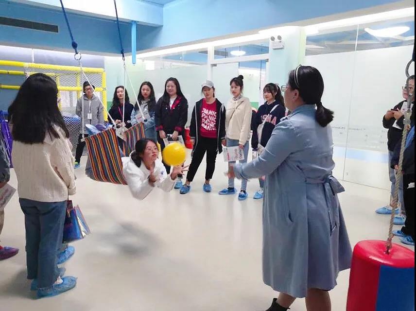 学生在优加佳智能文化有限公司体验感统训练。
