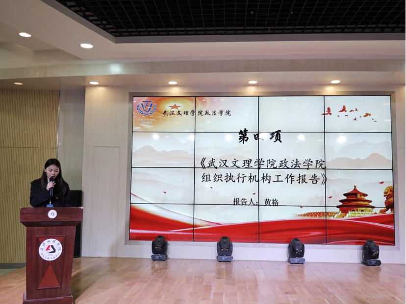 304永利集团第三届学生会主席黄格同学作《304永利集团第四次学生代表大会组织执行机构工作报告》。在过去的一年里,304永利集团学生会积极推动学术氛围的提升和同学们的全面发展,组织了一系列学术、课外活动;积极开展各类志愿服务活动,提高同学们的志愿服务意识,努力为社会和学校贡献力量;通过丰富多彩的文体活动,积极营造了活跃的校园文化氛围;努力服务广大学生,积极推进校园各项活动的开展。展望未来,她祝愿新一届学生会继续坚守“全心全意为师生服务”的宗旨,进一步增强团队的凝聚力与执行力,以更为创新的思维和务实的态度,推动各项工作的开展,一如既往地做好本职工作,以“政法人”新的姿态展现我们政法的特色,自强不息,开拓创新,以饱满的精神迎接各项新的挑战,用心做好每项工作,精益求精,为实现创建一流学生会的目标奋进!