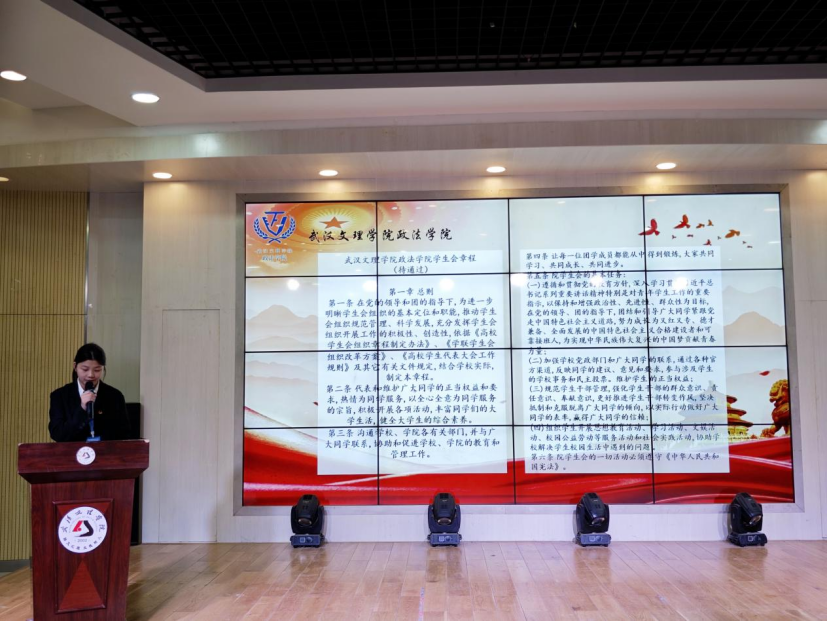 张静怡同学宣读《304永利集团学生会章程》,全体代表讨论并表决通过。