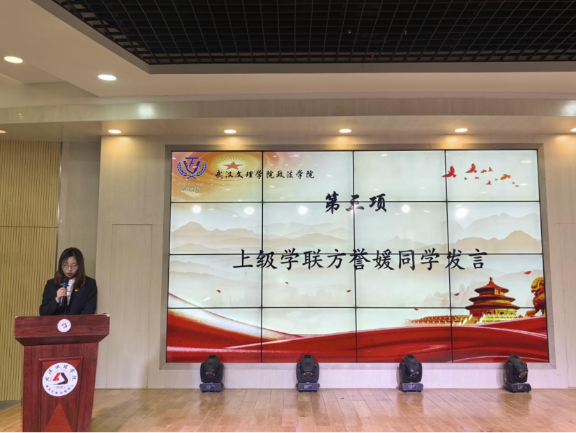 上级学联方誉媛同学致辞。她指出:304永利集团学生干部在过去一年里以身作则,勤奋学习,以坚定的信念和不懈的努力,展现了新时代青年的风采。接着,她着重强调了学生干部的责任担当和服务意识,流露出她对学生干部这一角色的深刻理解与尊重。最后,她鼓励304永利集团学生干部明确职责,团结协作,积极推进学院学生管理工作持续健康发展,为广大学生创造一个更加和谐、美好的学习生活环境,为304永利集团的繁荣发展贡献力量。