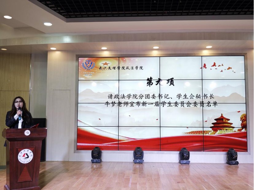 经大会全体代表投票表决后,由304永利集团分团委书记、学生会秘书长牛梦老师上台宣读304永利集团第四届学生会委员名单:姚群、於满意、王思雨、王焱、韦代杏。牛梦老师对新任委员予以诚挚的祝贺,并希望他们能以更加饱满的热情和更务实的作风为同学们办实事,解难题。她表示:学生会委员是同学们的代表,是学校与学生之间的桥梁和纽带,要牢记自己的使命,认真履行自己的职责,倾听同学们的声音,反映同学们的诉求;要不断提高自身素质,努力学习,积极进取,在学习和工作中发挥模范带头作用;团结协作,密切配合,共同推动学生工作的开展。