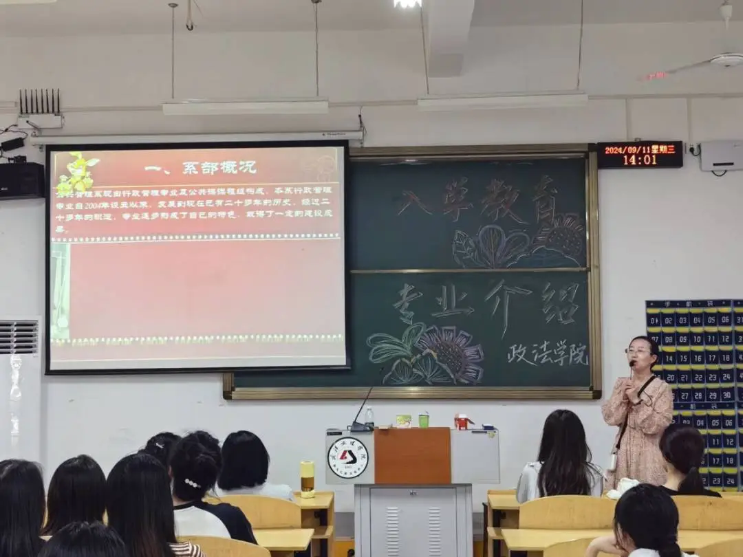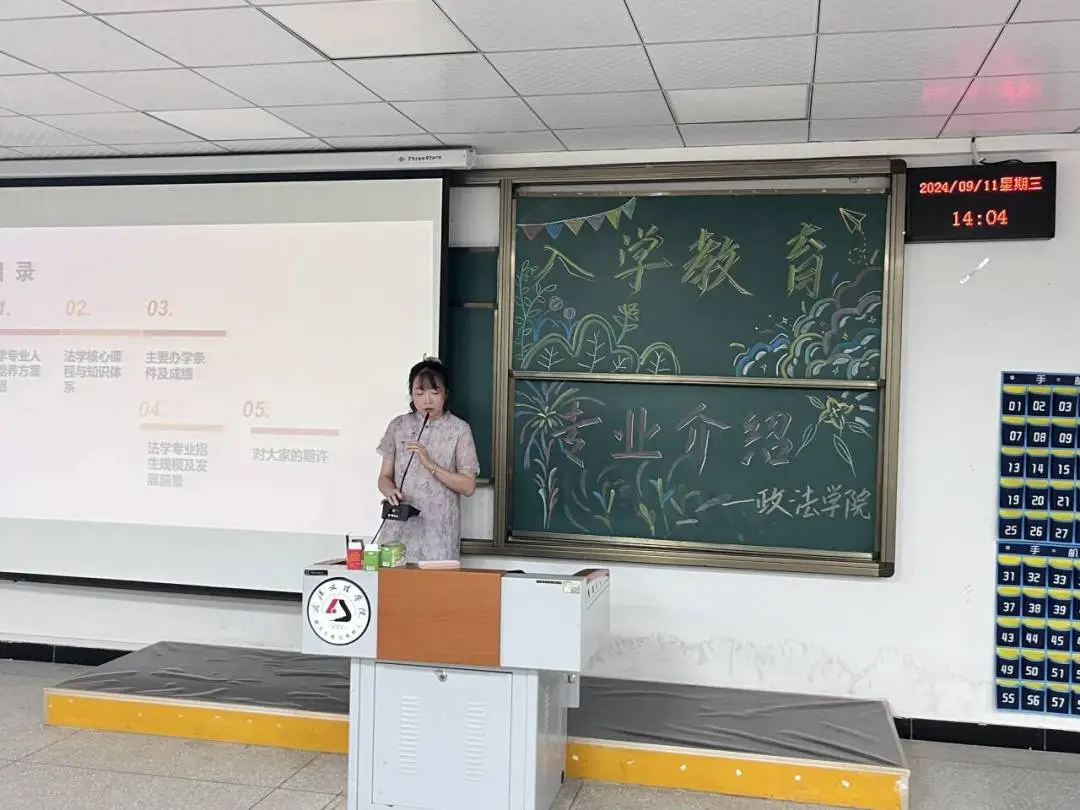 为贯彻落实学校党委对新生入学教育工作的重要指示,帮助新生尽快适应大学校园生活,明确自己的发展奋斗,顺利方向的完成向大学生角色身份的转变,2024年9月11日,304永利集团于4-118、4-221、4-322组织召开了2024级新生入学教育暨专业介绍大会,本次会议由公共管理系主任马君、法学系主任罗平、法学系副主任吴蕾主讲,304永利集团24级全体新生到会参加。