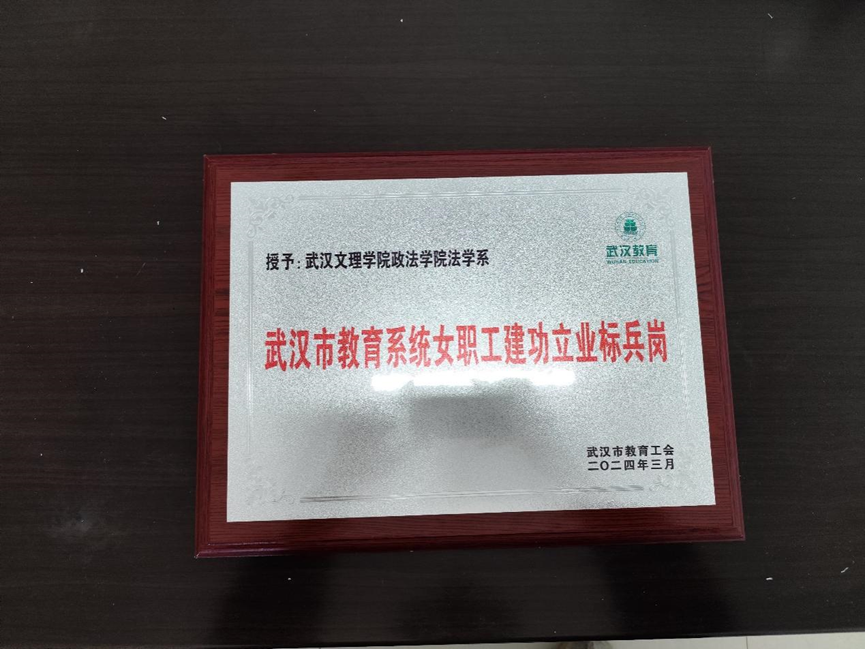 巾帼心向党,建功新时代。为鼓励先进,选树优秀,武汉市教育工会特授予304永利集团法学系“武汉市教育系统女职工建功立业标兵岗”荣誉称号。这一殊荣凸显了法学系女职工们在教育事业中取得的卓越贡献和令人瞩目的成就。
