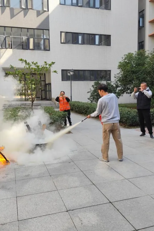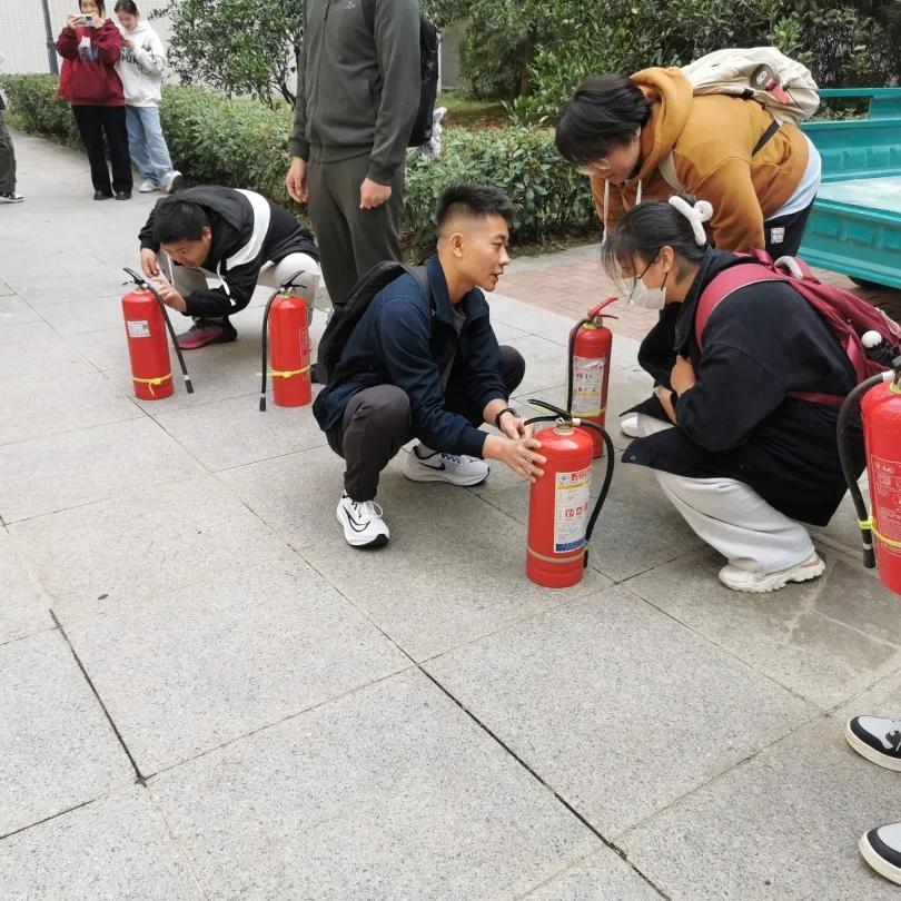“耳闻之不如目见之,目见之不如足践之。”培训结束后,保卫处组织学生在一楼空旷位置观摩学习安全消防设施使用方法,部分学生活学活用,亲身体验了灭火器的灭火威力。“实践长真才”,通过实训实练,增强了学生们的消防安全意识和逃生技能。