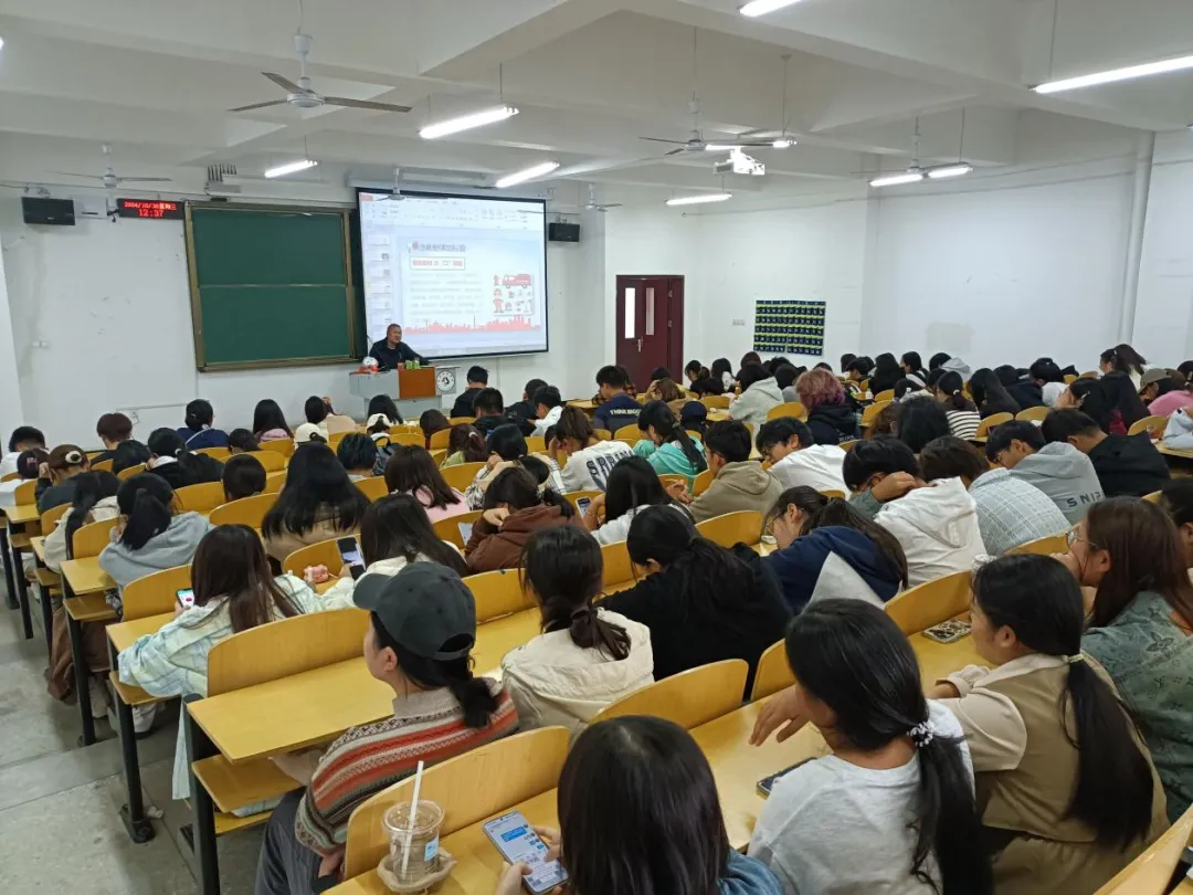 本次讲座根据年级划分为四个批次进行。总务处为我院学生详细讲解了火灾的基本知识和消防法律法规,重点讲解了在生活中,同学们该如何有效避免火灾发生、如何科学避免火情扩大、消灭火灾于萌芽之中,以及如何正确规范使用常见消防器材等,最后还用朗朗上口的四字口诀帮助我们记忆火场逃生术,引导同学们牢固树立消防安全意识、全面掌握消防安全技能。