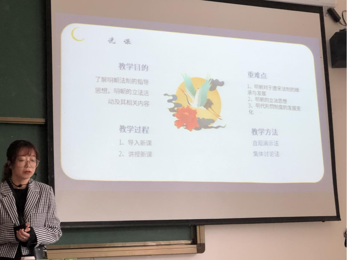 吴蕾老师以Q版漫画PPT为背景,风趣幽默的语言介绍了明朝的法律制度。戚文静老师概述了学前儿童教育发展状况,比较了不同历史时期,各国的学前教育实施状况。党永鹏老师则以中美贸易战为切入点,介绍了专利的基本概念、基本类型。吕溪老师以船的模型作为教具,形象地解释了国际贸易术语中CIF的基本含义,即在国际货物买卖合同中的成本费用、运费、保险费用的负担以及风险转移等问题。