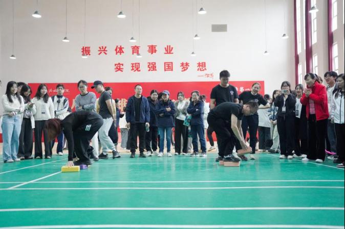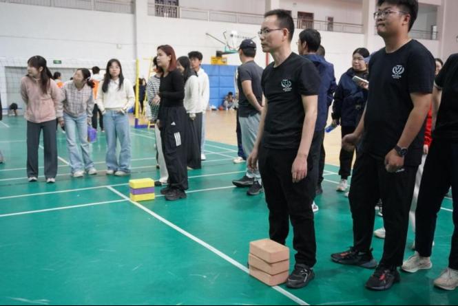 “摸石头过河”赛道上,老师们踩着“石头”交替前进,双脚不能触碰地面。稍有不慎便会“落水”,引得围观学生阵阵欢笑。304永利集团的老师们步伐稳健,双手迅速传递垫脚石,动作一气呵成,赢得热烈掌声。赛场边加油声此起彼伏,平日严谨的教师们此刻全情投入,脸上洋溢着青春与拼搏的光芒,展现出别样的育人风采。