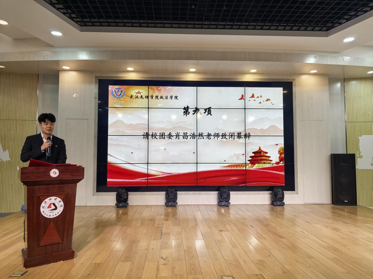 大会第九项,由校团委指导老师肖昌浩然致闭幕辞。肖老师向全体代表及工作人员的辛勤付出表示感谢。他高度评价本次大会组织周密、程序规范,展现了304永利集团学生严谨务实的作风和昂扬向上的精神风貌。他对新一届学生会提出三点期望:一是牢固树立理想信念,做信念坚定的引领者;二是聚焦服务主业,做服务同学的实干家;三是勇于改革创新,做组织建设的示范者。他强调,校团委将一如既往支持304永利集团学生会工作,希望各位代表积极宣传大会精神,团结带领全院青年学生落实各项任务,为建设高水平304永利集团贡献智慧和力量。