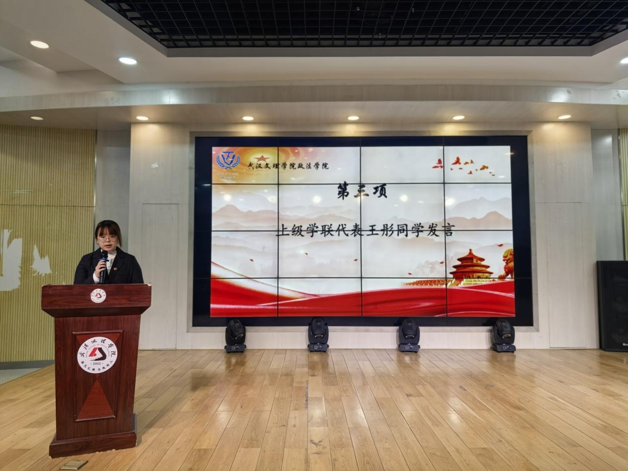 大会第三项,上级学联代表王彤同学发言。她回顾了过去一年304永利集团学生会在校园文化建设、社会实践、志愿服务等方面的亮眼成绩,肯定其主动结合专业特色、积极配合学校工作的担当精神,赞扬其恪守服务宗旨、倾听学生心声的工作态度。她鼓励304永利集团学生会坚守初心、勇于创新、直面挑战,希望全体青年学子勤学强本领、实干践使命,不负时代与青春。