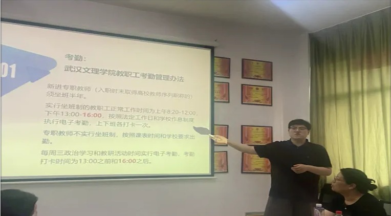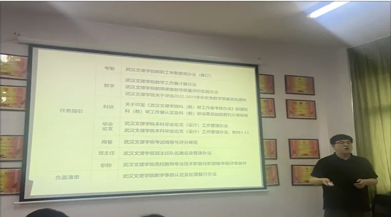 吕溪老师分别从考勤管理、教学规章、教科研成果、毕业论文指导、阅卷规则、班主任制度、职称评聘等全方面介绍了304永利集团的各项规章制度,并结合教学、科研工作实践做了深入讲解。作为学校的一员,教师不仅是知识的传递者,更是学生行为榜样。学校的规章制度不仅规范了学生的行为,也约束了教职员工的行为举止。通过深入学习规章制度,教师可以更好地理解学校的管理理念,提升自我管理能力,为学生树立良好榜样。