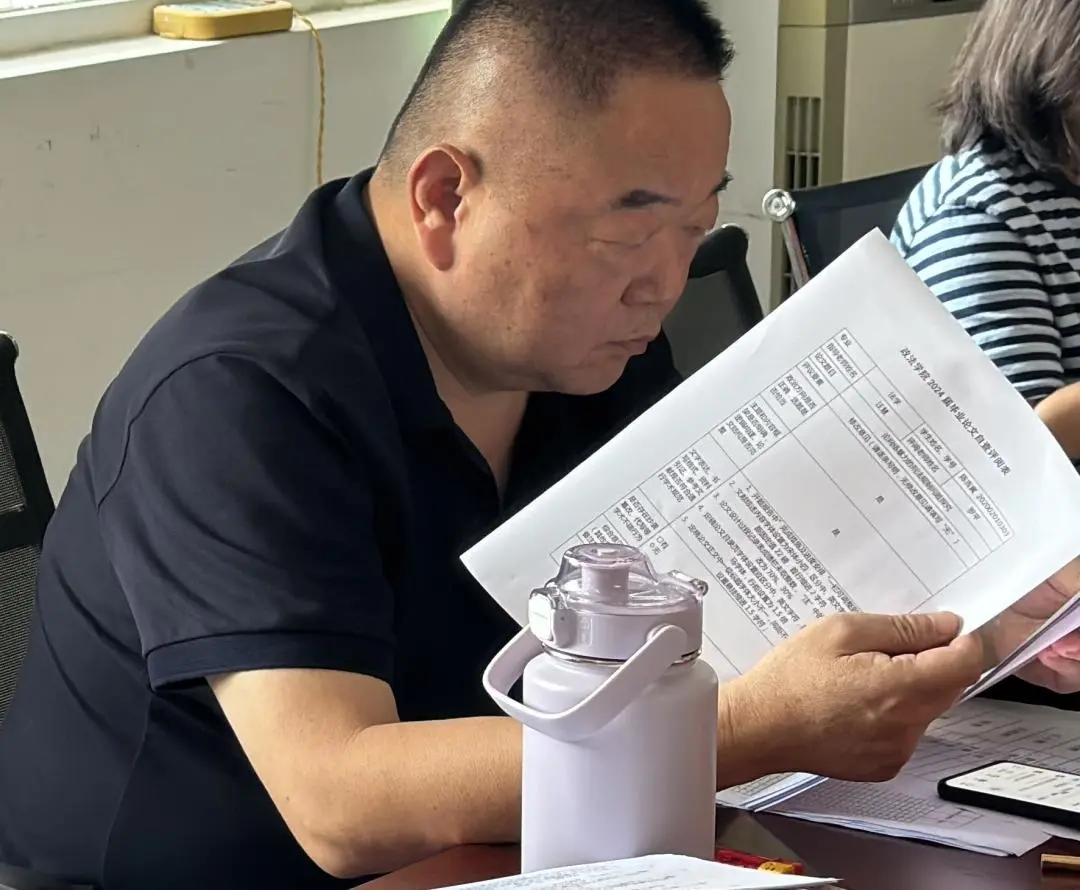 李耀宗处长查看毕业论文互查和学校检查结果落实情况,抽查毕业论文存档材料,以保障毕业论文的质量和规范性。