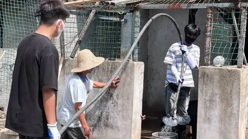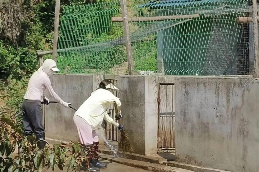 听说要去打扫猪圈,同学们争先恐后,生怕自己没有抢到一个趁手的工具。一些同学拿起高压水枪冲洗猪圈,在清凉和解压中让猪圈焕然一新;一些同学扶着水管辅助冲洗、帮助清理路面残留垃圾。他们用汗水和努力诠释着劳动的真谛,焕然一新的环境更展示了自己对劳动的深刻认识。