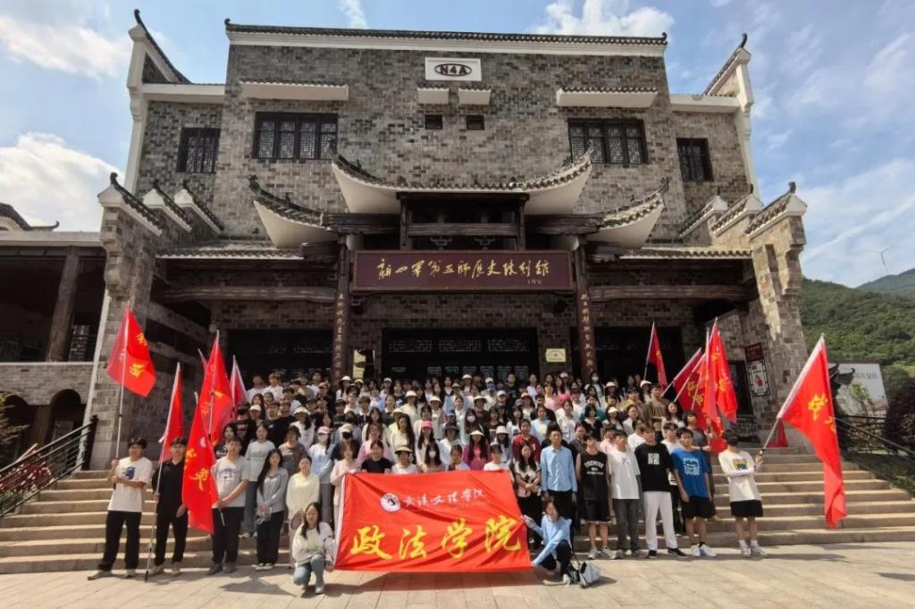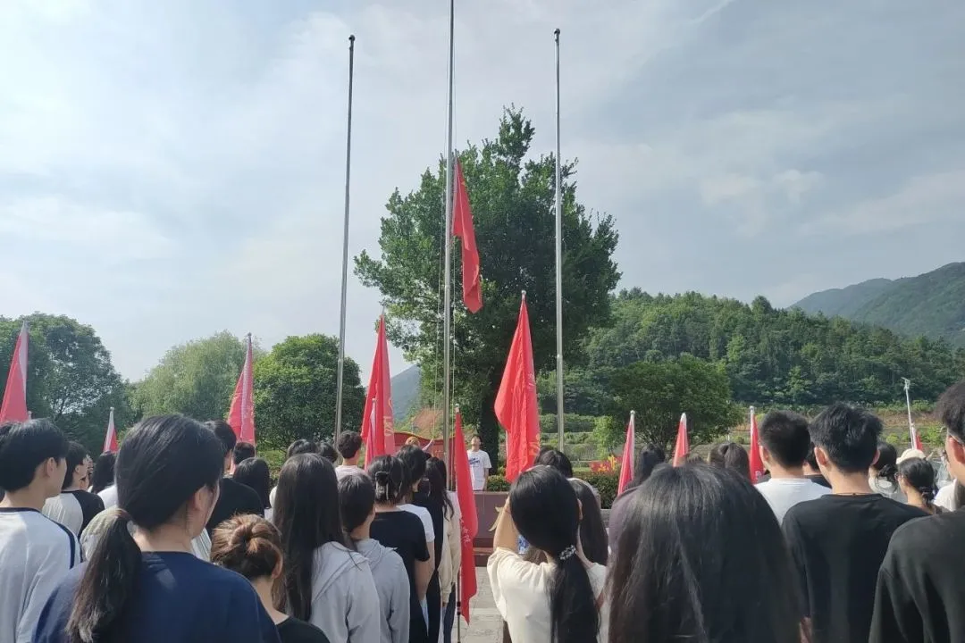 劳动教育的最后一天,同学们早早起床前往新四军第五师历史陈列馆进行参观学习。在老师的带领下,同学们列着整齐的队伍在革命文化广场上进行升国旗仪式,全场庄严肃穆,大家高声齐唱国歌,国旗高高飘扬在陈列馆门前。升旗仪式结束,同学们列队进入展馆,向革命先烈敬献花篮,并向先烈们深深地三鞠躬。随后,大家分批参观,听取引导人员讲解姚家山的历史、解说革命事件、介绍英雄先烈事迹。游览学习结束后,同学们在展馆门前挥舞旗帜,在那一抹青春洋溢的色彩中,仿佛又看到了先烈们的英勇身姿,又回到了革命抗战的年代。经历了此次红色革命教育的洗礼,相信同学们今后会更敬重革命先烈,更加坚定铭记历史的初心。