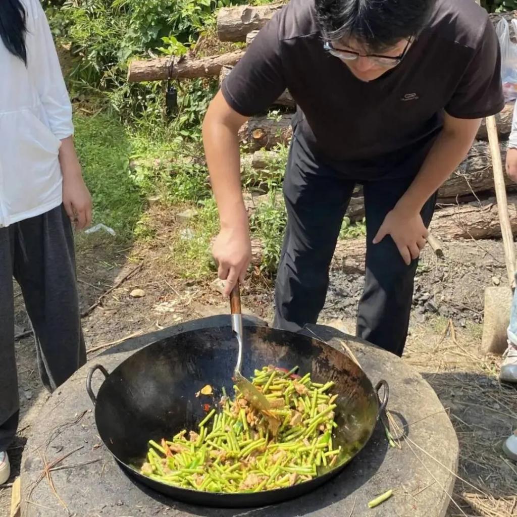 此次“移花接木”中,同学们深入自然,上山入林、砍树拾木。拿着手套、木锯、斧头等劳动工具,分成若干小组,在排长的指示和安排下拾柴、劈柴、运柴。为了寻找和挑选合适的柴火,同学们在确保自身安全的前提下,将柴火劈成合适大小,以便用于灶台起火。通过亲身体验劳动的过程,培养了他们对自然环境的尊重,增强了环境保护意识,同时也锻炼了他们的体能和团队协作精神。