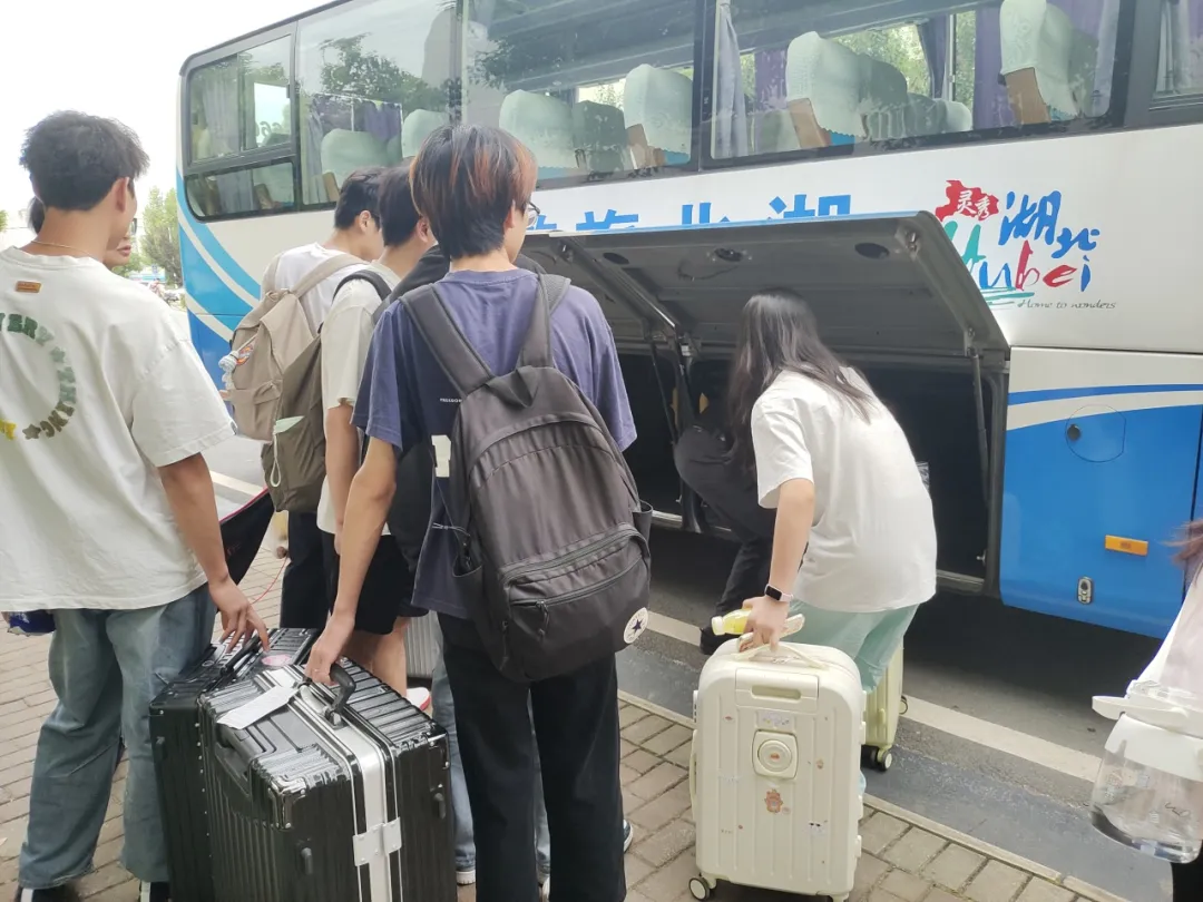 授旗仪式结束后,同学们有序地放置行李、上车,然后满怀激情地踏上了劳动实践之路。