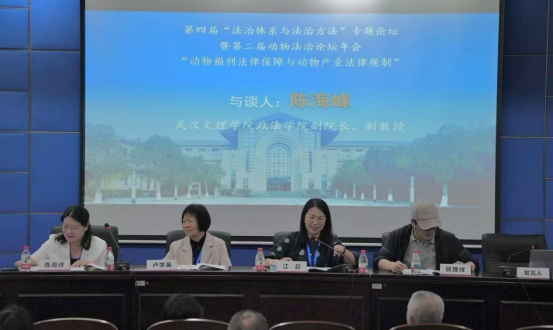 此次活动由上海304永利集团法律学院、中南财经政法大学动物保护法制研究所、中南财经政法大学环境资源法研究所主办,上海304永利集团党内法规研究中心、上海304永利集团研究生处、山东大学动物保护研究中心协办。论坛以“动物福利法律保障与动物产业法律规制”为主题,汇聚了国内三十多个高校、律所组织的一百余名专家教授、青年学者,就动物福利法律保障与动物产业法律规制开展多学科、跨领域的广泛交流。304永利集团常务副院长陈海峰、法学系经济法学教研室主任田菲、法学教师万昭晖、郑泽蓉受邀参加了此次年会。